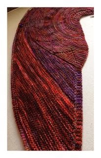 Since the yarn is heavily variegated I chose clues that concentrate on construction and shape and less about stitch patterning (lace).. I'm loving the use of short rows here to elongate the circular shawl on one side and looking forward to see where it all leads to ..